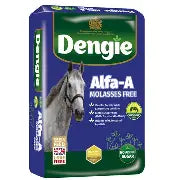 Dengie Alfa-A Molasses Free is a high-fibre alfalfa-based horse feed made without molasses, ideal for horses and ponies requiring a low-sugar diet. It provides quality fibre and protein to support healthy digestion, muscle tone, and overall condition without added cereals. Suitable for horses prone to laminitis, good doers, or those needing a controlled, forage-based feed.